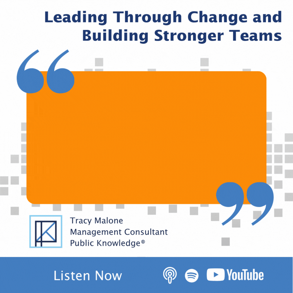 In this episode, Stacey is joined by Carla West from the North Carolina Department of Health and Human Services and Tracy Malone of Public Knowledge® (PK). They examine how leaders can guide their teams through change while shaping a healthy organizational culture.